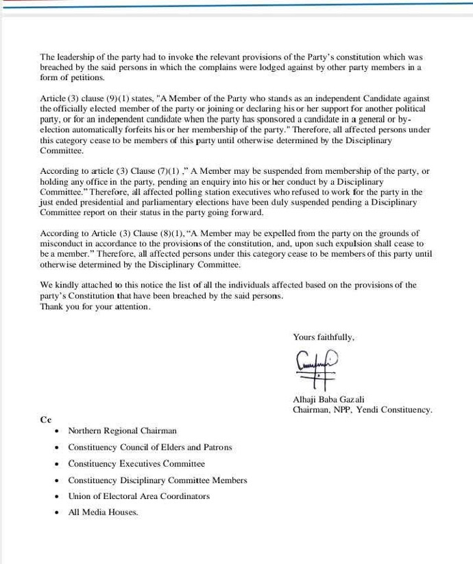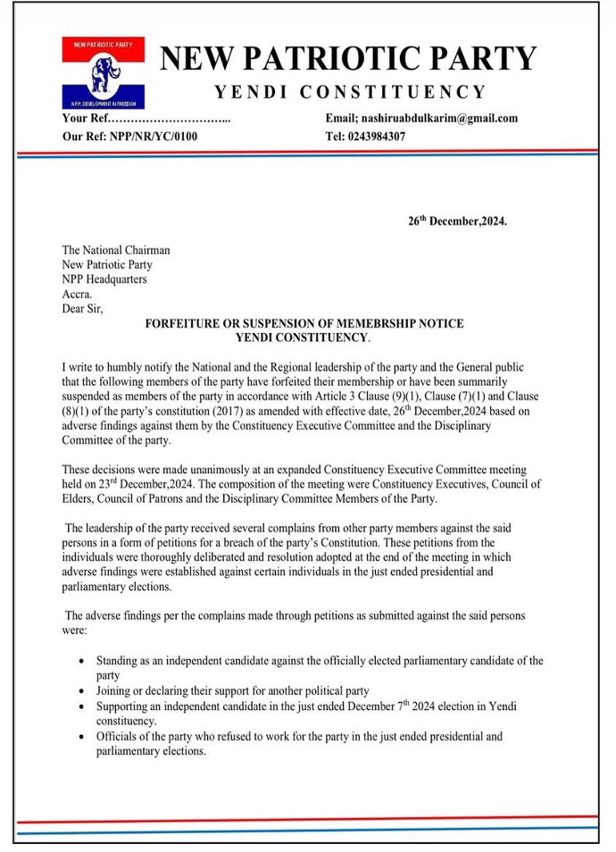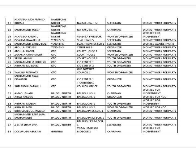 Palpably, the issue has not only become a bitter pill for leadership, it has also affected the grassroot. At the grassroot level, for instance, the forfeiture and/or suspension of leaders and members in some constituencies, such as Yendi and Agona West Constituencies located in Northern and Central Regions, respectively, has doled bitter pills and poisoned the atmosphere for any reconciliation. (See Appendix for some of the releases).
